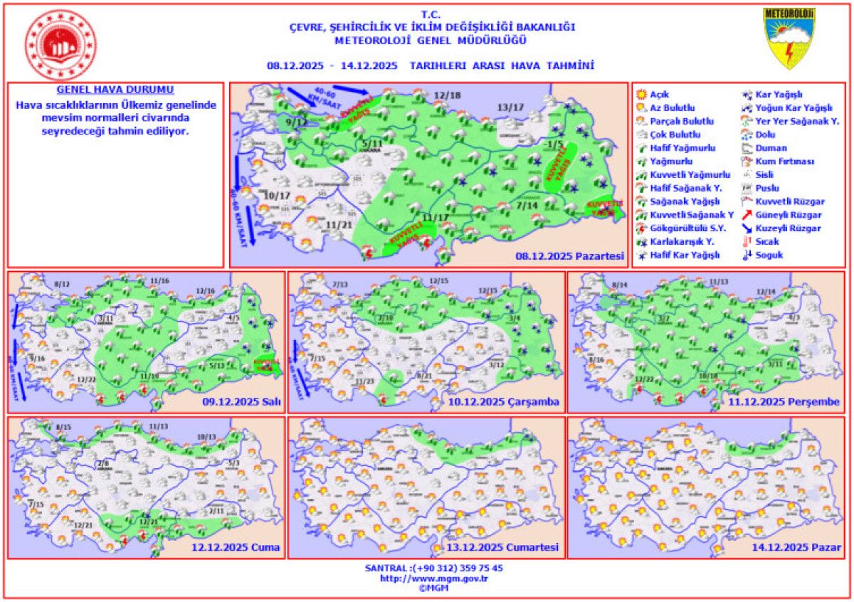 Erzincan, Bingöl ve Muş çevrelerinde ise yağmur ve yer yer karla karışık yağmur etkili olacak. Rüzgarın kuzey yönlerden hafif, zaman zaman orta kuvvette esmesi öngörülüyor.